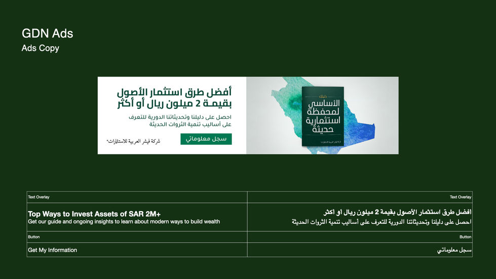 Our project for Fisher Investments, a prominent global investment adviser, centered on a critical challenge: to significantly generate actionable leads and increase market awareness. Crucially, this had to be achieved while inherently building trust and credibility by consistently showcasing their established history, AUM, client numbers, CMA license, and Shariah compliance.